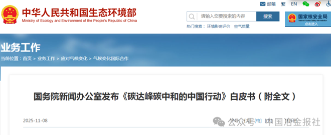 11月8日,國務院新聞辦公室發布《碳達峰碳中和的中國行動》白皮書。