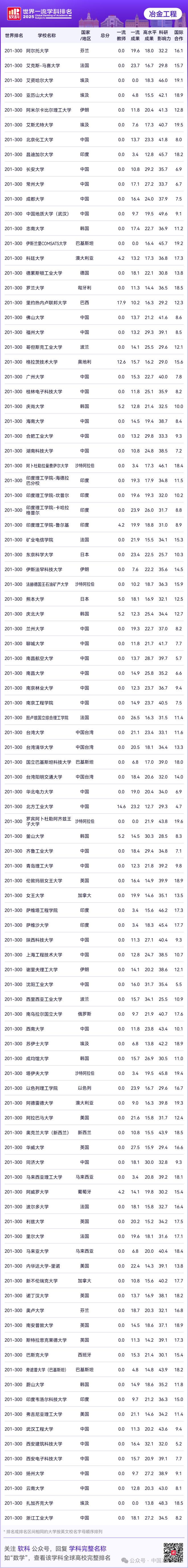 11月18日,軟科發布了2025世界一流學科排名,其中包含冶金工程學科。