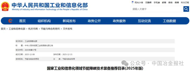 12月15日,工信部官網發布了《國家工業和信息化領域節能降碳技術裝備推薦目錄(2025年版)》。