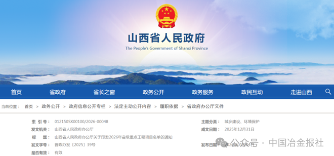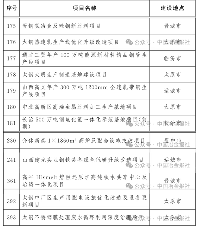 近日,山西省人民政府辦公廳印發2026年省級重點工程項目名單,其中鋼鐵相關項目整理如下——