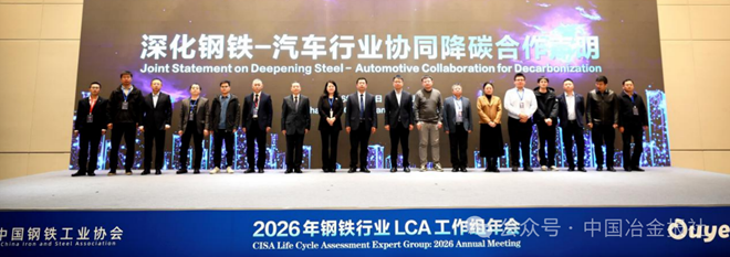 1月15日,在上海舉辦的2026年鋼鐵行業LCA工作組年會上,《深化鋼鐵—汽車行業協同降碳合作聲明》(下稱《合作聲明》)正式發布。本聲明由中國鋼鐵工業協會、中國汽車技術研究中心(中汽碳)與(yu)落(luo)基(ji)山(shan)研(yan)究(jiu)所(suo)共(gong)同(tong)召(zhao)集(ji),旨(zhi)在(zai)推(tui)動(dong)鋼(gang)鐵(tie)與(yu)汽(qi)車(che)產(chan)業(ye)鏈(lian)協(xie)同(tong)減(jian)排(pai),加(jia)快(kuai)低(di)碳(tan)排(pai)放(fang)鋼(gang)在(zai)汽(qi)車(che)行(xing)業(ye)的(de)規(gui)模(mo)化(hua)應(ying)用(yong),助(zhu)力(li)我(wo)國(guo)製(zhi)造(zao)業(ye)綠(lv)色(se)低(di)碳(tan)高(gao)質(zhi)量(liang)發(fa)展(zhan)。