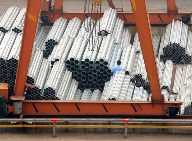 鋼材市場裏工人在裝運鋼材(圖片來源:CFP)