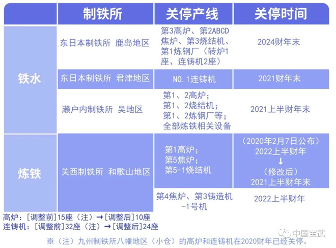 除了關停已經公布的瀨戶內製鐵所吳地區全部煉鐵設備(高爐2座、燒結、煉鋼)以及關西製鐵所和歌山地區煉鐵設備(高爐1座及相關設備)外,還計劃實施如下舉措——