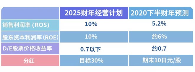 通過各項經營計劃的實施,以應對國內需求下降、海外市場競爭加劇等環境惡化。與此同時,預計在2025財年或之後將正式啟動對與零碳鋼相關的設施進行全麵投資,為了確保可靠的財務體質(國際評級A級),實現企業價值的恢複,在2025財年要實現如下財務指標: