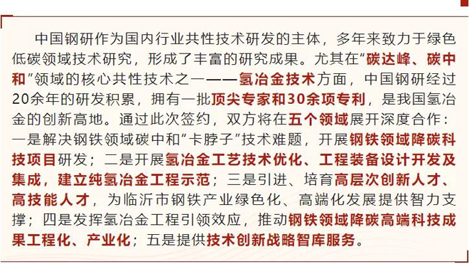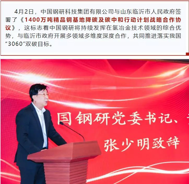 中國鋼研與臨沂市人民政府簽署1400萬噸精品鋼基地降碳及碳中和行動計劃戰略合作協議