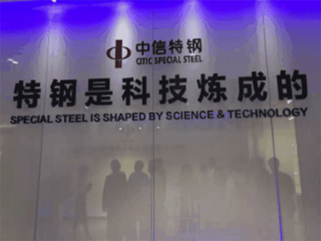 圖為中信泰富特鋼展廳戰略合作客戶牆。(資料照片)