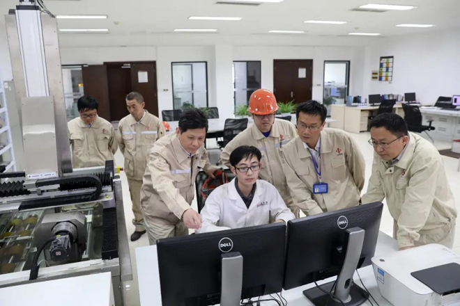 圖為中信泰富特鋼汽車鋼研發團隊正在進行技術攻關。(特約通訊員 陸衛宇 攝)