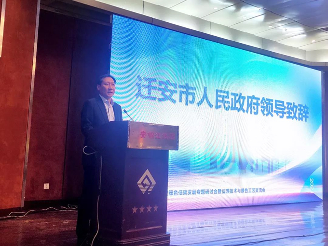 遷qian安an市shi人ren民min政zheng府fu陳chen金jin釘ding副fu市shi長chang到dao會hui致zhi開kai幕mu辭ci,表biao示shi會hui議yi在zai遷qian安an舉ju行xing有you著zhe重zhong要yao的de意yi義yi。他ta提ti到dao,近jin年nian來lai,以yi首shou鋼gang遷qian鋼gang為wei代dai表biao,遷qian安an市shi在zai促cu進jin鋼gang鐵tie全quan產chan業ye鏈lian和he產chan品pin全quan生sheng命ming周zhou期qi綠lv色se發fa展zhan方fang麵mian已yi經jing取qu得de了le一yi些xie成cheng績ji。作zuo為wei“鋼鐵大市”,遷安有責任有義務在綠色低碳發展的領域當先鋒、做表率。