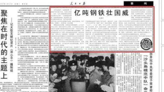 圖為《人民日報》發表的《億噸鋼鐵壯國威》文章(圖片來源於網絡)
