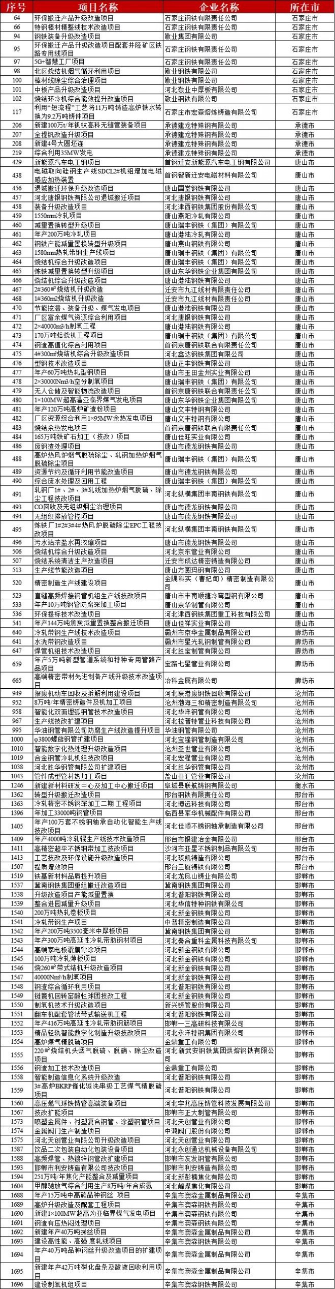 涉及首鋼、建龍、敬業、燕鋼等127個鋼鐵新建、升級改造項目!河北省工業技改項目全名單出爐!