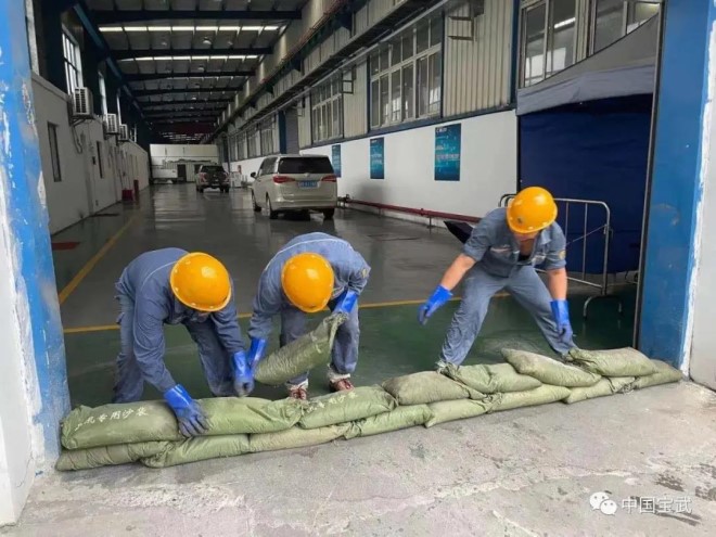 今年第6號台風“煙花”來勢洶洶,中國寶武及其相關各子公司寶鋼股份、歐冶雲商、寶武水務、寶武重工、寶鋼包裝、寶鋼金屬、寶武智維、寶信軟件、寶武環科、寶武碳業、寶武清能、寶鋼資源、寶地資產、馬鋼集團等公司紛紛進行防汛部署;安排專人值班,對重點區域、易受雨水影響區域進行隱患排查;統計並購置物資,從而保證物資充足;確保不發生人身安全事故,不發生重大設備損壞。