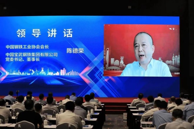 “我戰鬥在金色的爐台上,這裏是毛主席到過的地方,親切的教導,時刻在耳邊回響,沸騰的鋼水映紅了我的胸膛......”7月29日,中國鋼鐵工業協會召開第六屆會員大會二次會議,剛剛就任鋼協新任輪值會長的中國寶武集團黨委書記、董事長陳德榮,在會議現場的視頻連線中,以深情朗誦《毛主席的光輝把爐台照亮》這首耳熟能詳流傳於上世紀六七十年代的紅歌歌詞作為開場白,引起了全場與會嘉賓的共鳴。