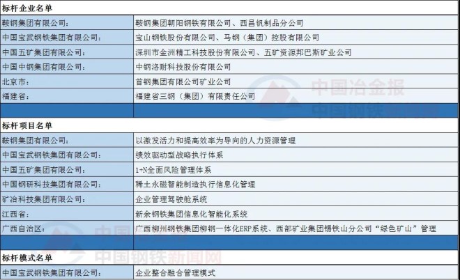 “三個標杆”名單中有多家鋼鐵企業入選,具體名單如下: