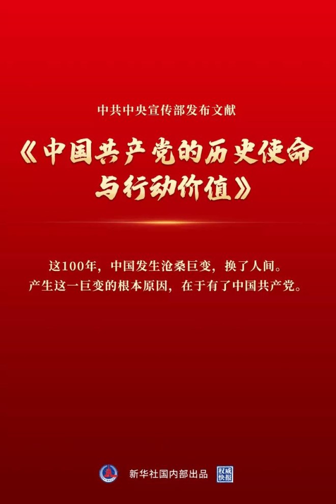 8月26日,中宣部發布文獻《中國共產黨的曆史使命與行動價值》。