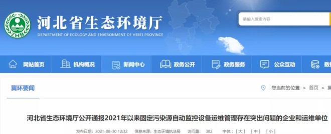 近日,河北省生態環境廳官網對有關環境問題進行了通報。