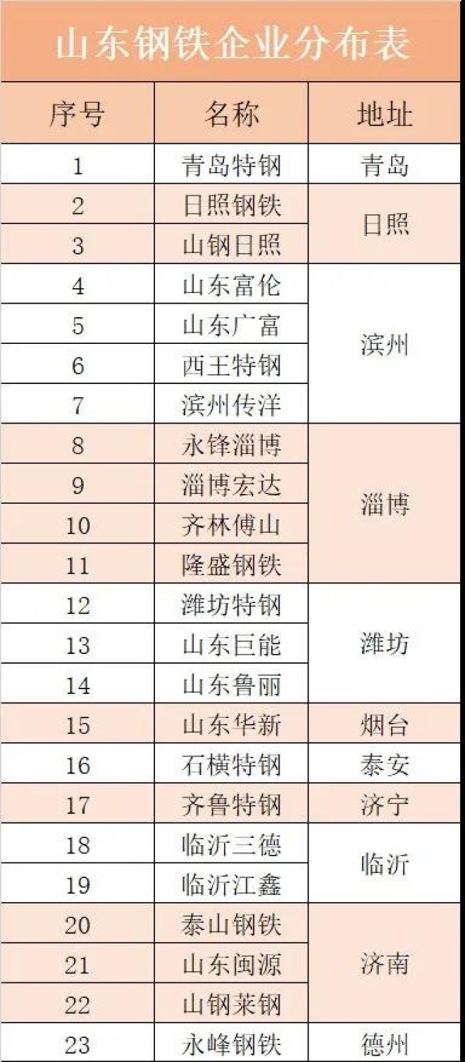 山東省共有二十二家鋼鐵企業,分布在11個城市中,其中日照是山東打造的第一鋼鐵基地,僅山鋼日照公司和日鋼集團的實際產量就達到了2300多萬噸。