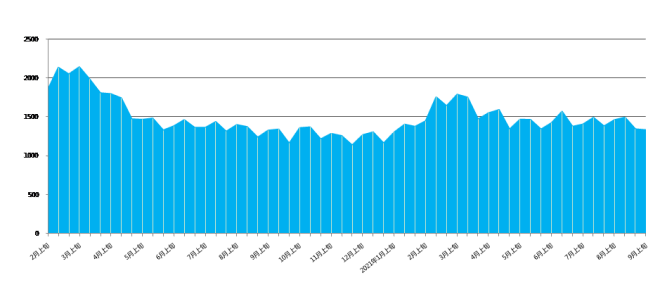 從社會庫存情況來看,7月份以來,鋼材社會庫存基本保持比較平穩態勢。據鋼協統計,7月上旬,20個城市5大品種鋼材社會庫存1166萬噸,環比增加37萬噸,上升3.3%,庫存繼續小幅回升;比年初增加436萬噸,上升59.7%;比去年同期減少82萬噸,下降6.6%。8月下旬,20個城市5大品種鋼材社會庫存為1174萬噸,環比減少18萬噸,下降1.5%;比年初增加444萬噸,上升60.8%;比去年同期減少61萬噸,下降4.9%。到9月上旬,20個城市5大品種鋼材社會庫存1138萬噸,環比減少 36萬噸,下降3.1%,庫存連續下降;比年初增加408萬噸,上升55.9%;比去年同期減少105萬噸,下降8.4%。