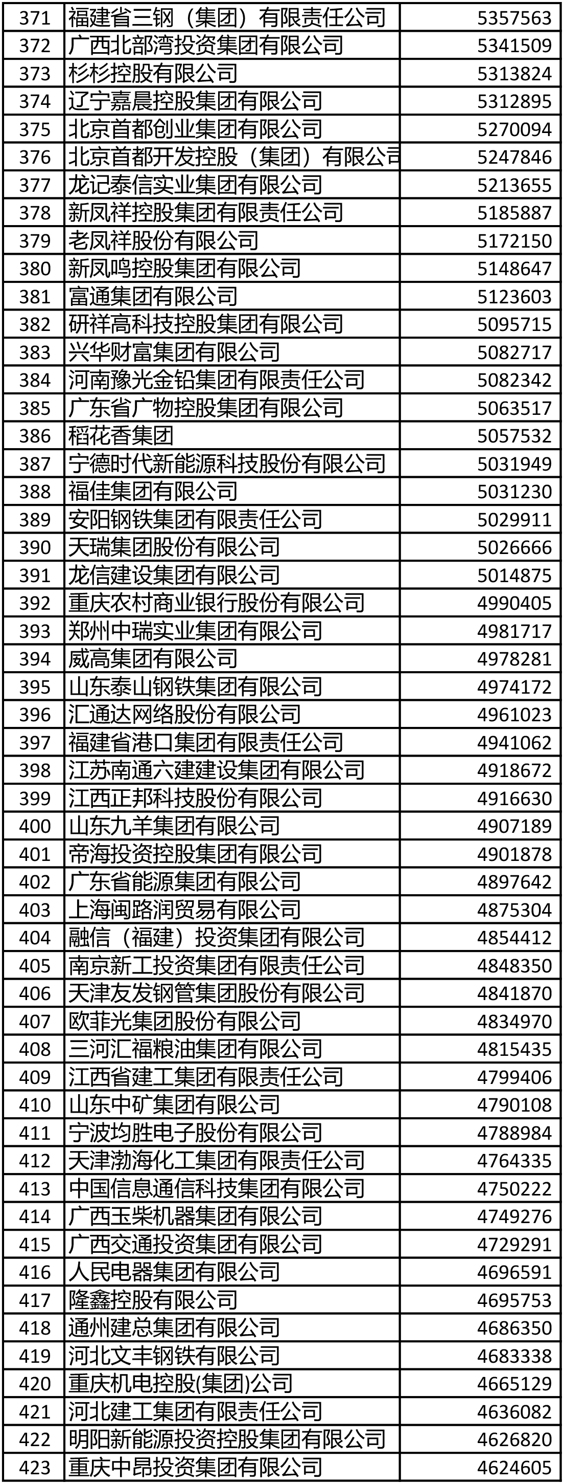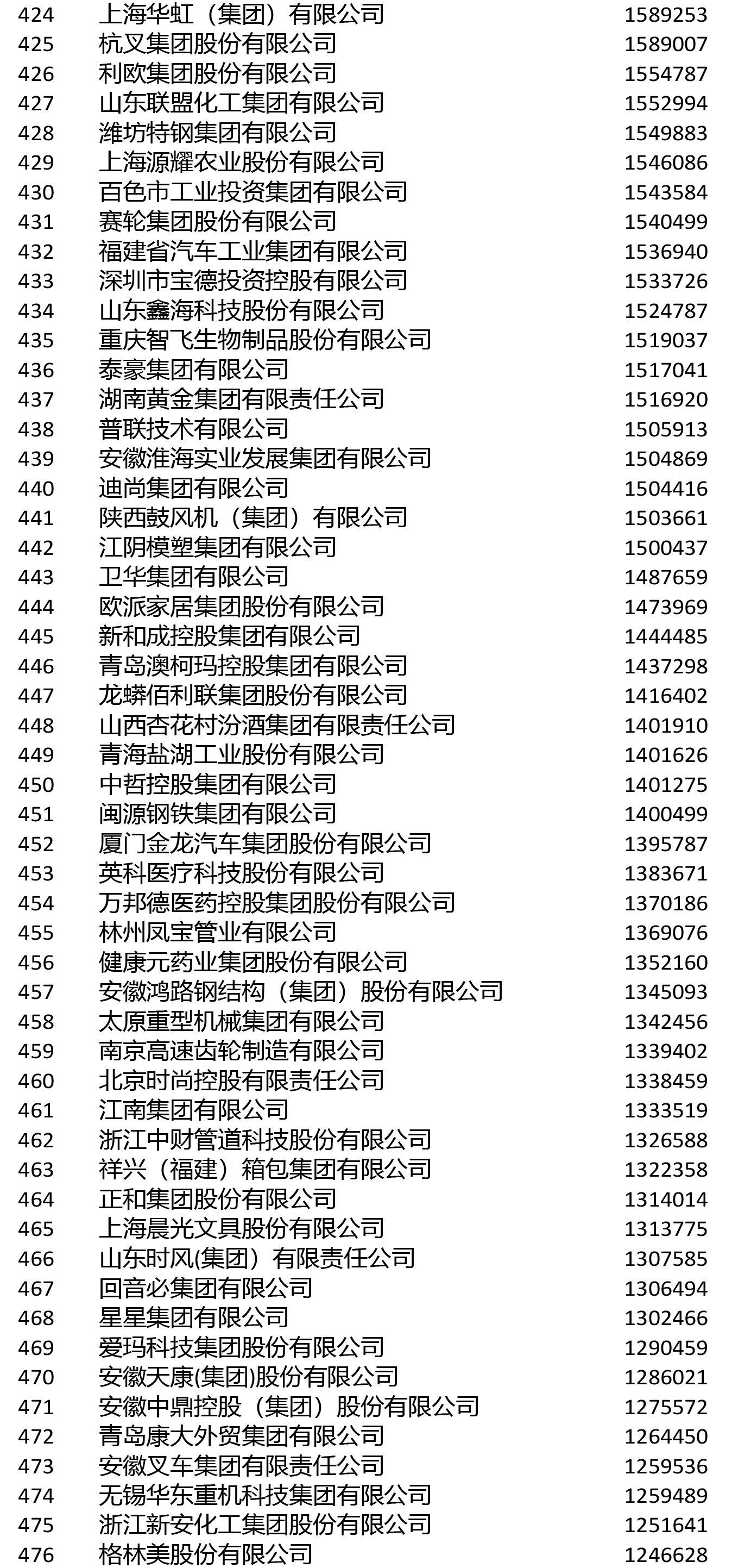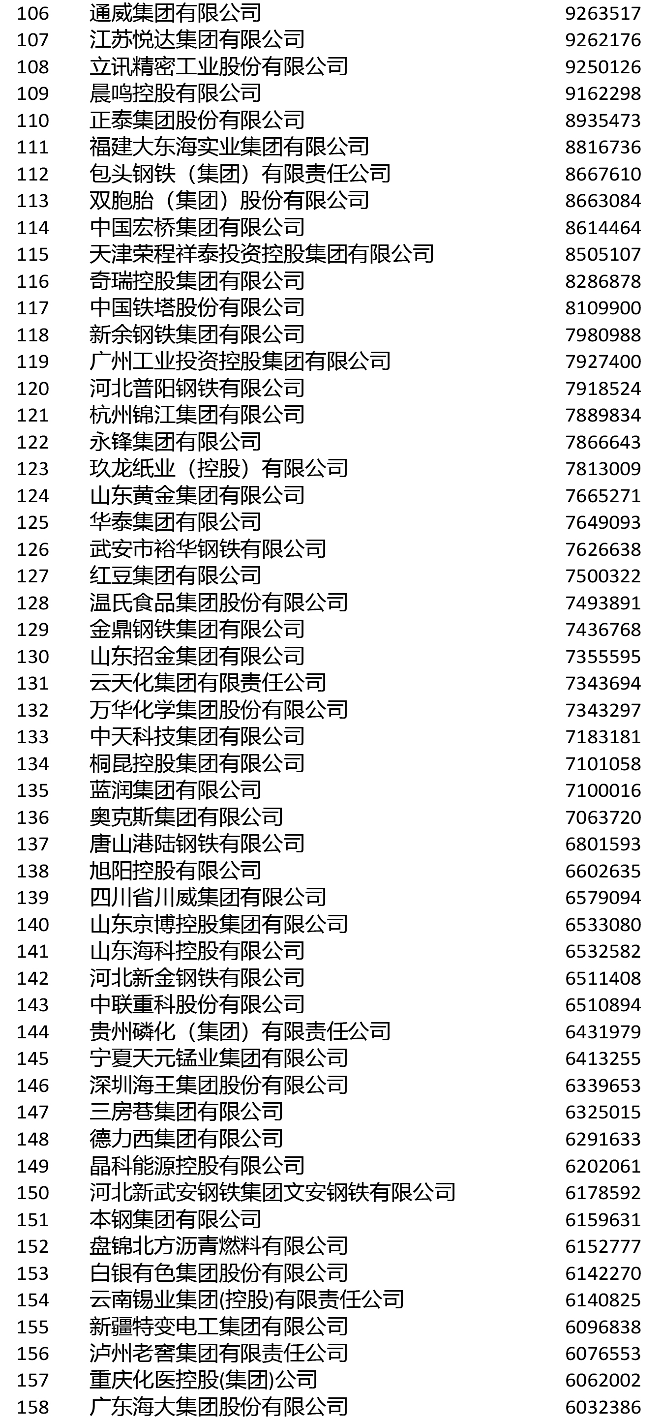 進入前200名的鋼鐵企業還有敬業集團(106)、山鋼集團(108)、鞍鋼集團(111)、首鋼集團(114)、建龍重工(119)、南鋼集團(145)、杭鋼集團(149)、華菱集團(155)、河北新華聯合冶金控股集團(164)、中天鋼鐵(166)、冀南鋼鐵(168)、河北津西鋼鐵(176)、廣西柳鋼集團(191)、上海德龍鋼鐵集團(193)、酒鋼集團(196)。