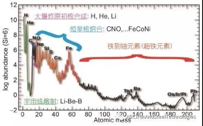 圖為太陽係元素豐度及可能的核合成起源[1]