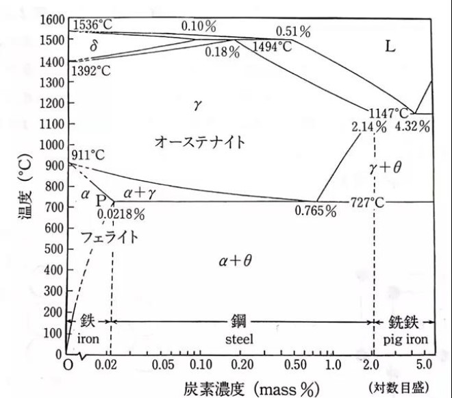 圖為鐵碳相圖(對數橫坐標)