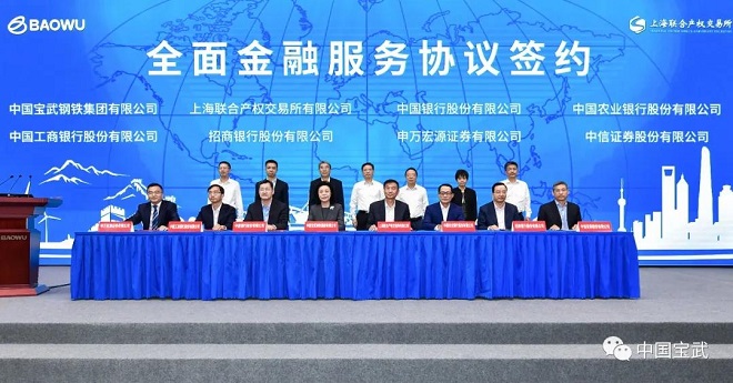 推介會上,舉行了中國寶武全麵金融服務簽約儀式。中國寶武與中國工商銀行、中國農業銀行、中國銀行、招商銀行、中信證券、申(shen)萬(wan)宏(hong)源(yuan)證(zheng)券(quan)等(deng)六(liu)家(jia)機(ji)構(gou)簽(qian)署(shu)全(quan)麵(mian)金(jin)融(rong)服(fu)務(wu)協(xie)議(yi),與(yu)上(shang)海(hai)聯(lian)合(he)產(chan)權(quan)交(jiao)易(yi)所(suo)簽(qian)署(shu)業(ye)務(wu)合(he)作(zuo)框(kuang)架(jia)協(xie)議(yi),進(jin)一(yi)步(bu)深(shen)化(hua)全(quan)方(fang)位(wei)合(he)作(zuo),增(zeng)強(qiang)互(hu)信(xin),實(shi)現(xian)互(hu)利(li)共(gong)贏(ying)。