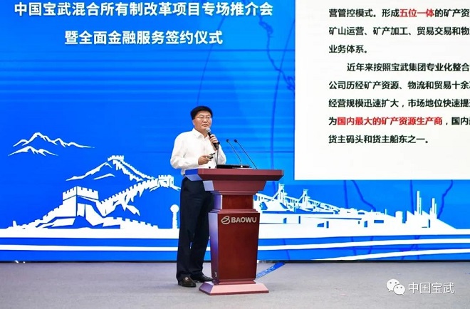 中zhong國guo寶bao武wu作zuo為wei國guo企qi改gai革ge的de排pai頭tou兵bing,認ren真zhen貫guan徹che黨dang中zhong央yang國guo務wu院yuan的de指zhi導dao精jing神shen,深shen入ru實shi施shi國guo企qi改gai革ge三san年nian行xing動dong,積ji極ji穩wen妥tuo深shen化hua混hun合he所suo有you製zhi改gai革ge,一yi批pi混hun改gai項xiang目mu開kai花hua結jie果guo。希xi望wang相xiang關guan企qi業ye以yi此ci為wei契qi機ji,借jie助zhu產chan權quan交jiao易yi的de市shi場chang化hua平ping台tai,通tong過guo混hun合he所suo有you製zhi改gai革ge,積ji極ji引yin入ru高gao匹pi配pei度du、高認同感、高協同性的戰略投資者,不斷調整優化企業股權結構,把推進混合所有製改革同打造原創技術策源地和現代產業鏈鏈長、落實碳達峰碳中和的要求、jiakuaijiansheshijieyiliuqiyedengzhanlvemubiaohezhongdianrenwujieheqilai,tonggexiangguoziguoqigaigerenwuxietongqilai,chongfenyunyongshichanghuajizhi,quanmianjiaqiangdangdelingdaohedangdejianshe,shixianxietongfazhan。