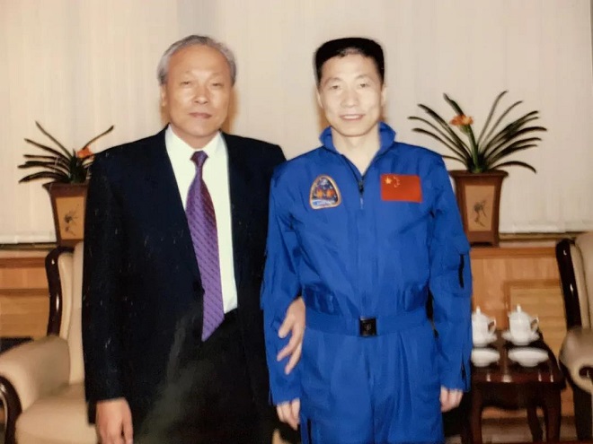 在看完神舟十三號飛船成功發射後,第九屆全國政協委員、原冶金工業部副部長、中(zhong)國(guo)鋼(gang)鐵(tie)工(gong)業(ye)協(xie)會(hui)第(di)一(yi)屆(jie)會(hui)長(chang)吳(wu)溪(xi)淳(chun)心(xin)情(qing)激(ji)動(dong),作(zuo)為(wei)中(zhong)國(guo)人(ren)的(de)自(zi)豪(hao)感(gan)油(you)然(ran)而(er)生(sheng),更(geng)為(wei)鋼(gang)鐵(tie)人(ren)助(zhu)力(li)我(wo)國(guo)航(hang)天(tian)事(shi)業(ye)發(fa)展(zhan)所(suo)做(zuo)的(de)貢(gong)獻(xian)而(er)欣(xin)喜(xi)不(bu)已(yi)。他(ta)向(xiang)記(ji)者(zhe)發(fa)來(lai)自(zi)己(ji)在(zai)2003年首次載人航天發射成功慶功會前與航天員的合照。當時,他是代表冶金行業(提供高溫高強合金材料)出席的。