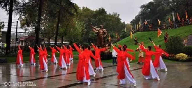 南鋼職工為霸王山紀念館專門編排了舞蹈武術,通背拳第六代傳人、南京市武協副秘書長、江北新區武協常務副秘書長厲恩寶現場武術表演《通背五行劍》。儀式結束後,來賓們饒有興趣地參觀了霸王山紀念館。