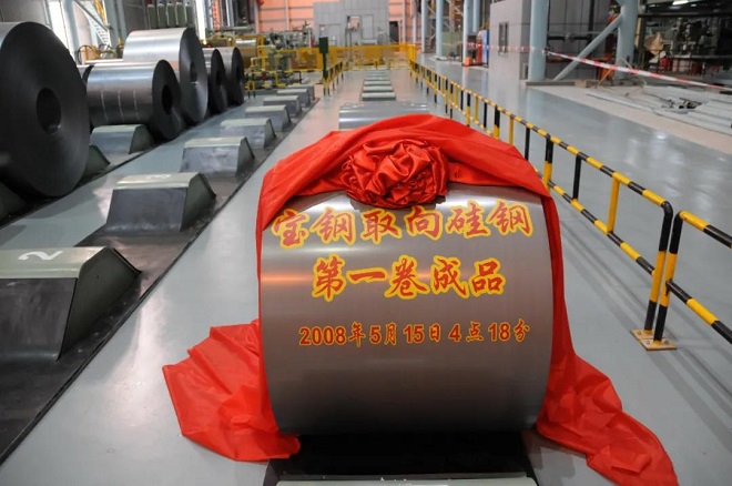 2008年5月15日,寶鋼取向矽鋼第一卷合格卷成功下線,標誌著寶鋼取向矽鋼自主研發取得成功。僅僅相隔兩個半月,2008年7月29日,寶鋼第一卷高磁感取向矽鋼下線;又隔4個半月,2008年12月12日,寶鋼第一卷激光刻痕取向矽鋼下線。一年內,寶鋼取向矽鋼3個細分品種全部成功下線。