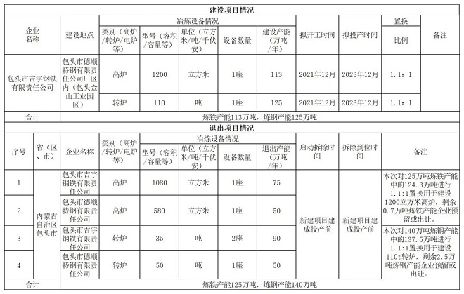 07包頭市吉宇鋼鐵實施整合搬遷綠色升級項目鋼鐵產能置換方案