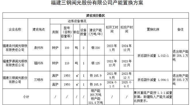 按照《國務院關於化解產能嚴重過剩矛盾的指導意見》《國務院關於鋼鐵行業化解過剩產能實現脫困發展的意見》和《鋼鐵行業產能置換實施辦法》要求,現將福建三鋼閩光股份有限公司產能置換方案予以公告,歡迎社會公眾進行監督。