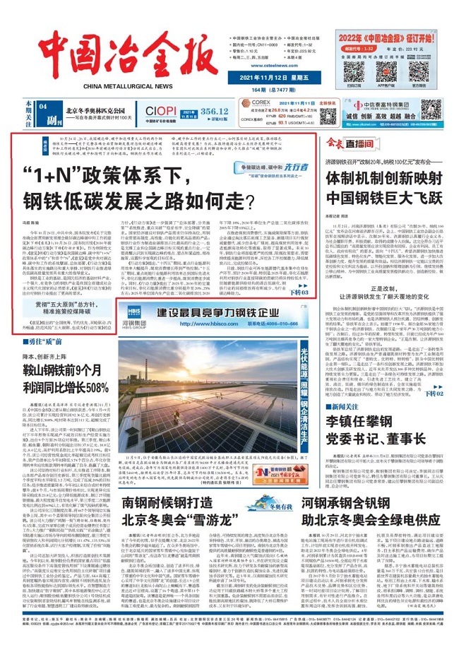 今年10月24日,中共中央、國務院發布《關於完整準確全麵貫徹新發展理念做好碳達峰碳中和工作的意見》(下稱《意見》);10月26日,國務院印發《2030年前碳達峰行動方案》(下稱《行動方案》)。作為綱領性文件,《意見》和《行動方案》是我國碳達峰、碳中和“1+N”政策體係中的“1”和首個“N”。《意見》是黨中央對碳達峰、碳中和工作的係統擘畫、總體部署,《行動方案》是具體落實的實施路徑和重大舉措,對鋼鐵行業推進綠色低碳高質量發展具有重大的指導意義。