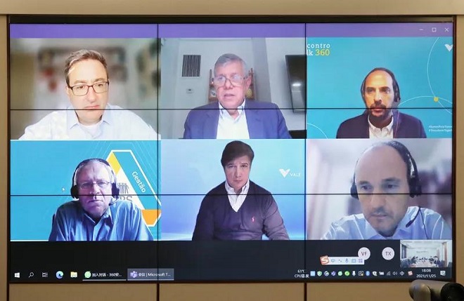 11月25日,中國鋼鐵工業協會黨委書記、執行會長何文波與淡水河穀首席執行官柏安鐸(Eduardo Bartolomeo)、鐵礦石業務執行副總裁司馬盛(Marcelo Spinelli)等舉行視頻會議。