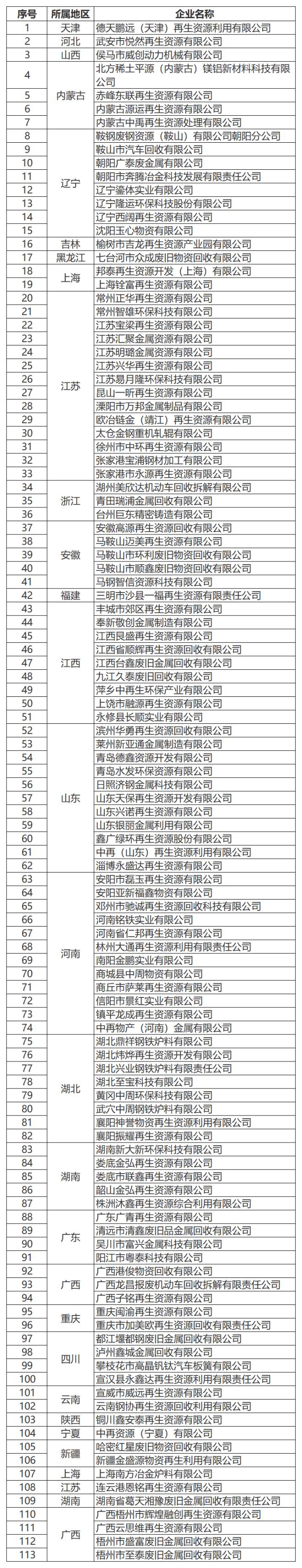 符合《廢鋼鐵加工行業準入條件》企業名單(第九批)