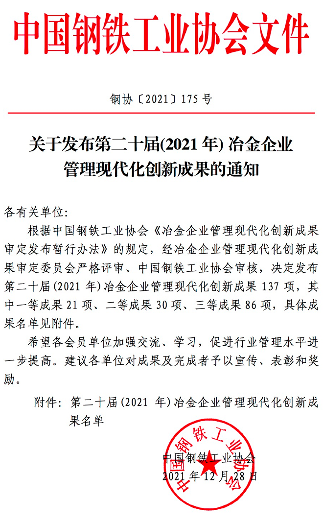 第二十屆(2021年)冶金企業管理現代化創新成果發布
