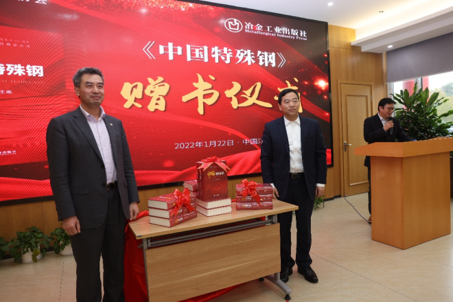 1月22日,《中國特殊鋼》新書發布會在江蘇江陰中信泰富特鋼集團總部成功舉行。中國鋼鐵工業協會黨委副書記薑維,中國特鋼企業協會會長、中信泰富特鋼董事長、《中國特殊鋼》主(zhu)編(bian)錢(qian)剛(gang),中(zhong)國(guo)特(te)鋼(gang)企(qi)業(ye)協(xie)會(hui)名(ming)譽(yu)會(hui)長(chang)俞(yu)亞(ya)鵬(peng),太(tai)鋼(gang)集(ji)團(tuan)董(dong)事(shi)長(chang)高(gao)祥(xiang)明(ming),寶(bao)武(wu)特(te)冶(ye)董(dong)事(shi)長(chang)章(zhang)青(qing)雲(yun),西(xi)寧(ning)特(te)鋼(gang)董(dong)事(shi)長(chang)尹(yin)良(liang)求(qiu),東(dong)北(bei)特(te)鋼(gang)總(zong)經(jing)理(li)孫(sun)啟(qi),中(zhong)信(xin)泰(tai)富(fu)特(te)鋼(gang)集(ji)團(tuan)常(chang)務(wu)副(fu)總(zong)裁(cai)王(wang)文(wen)金(jin),中(zhong)國(guo)冶(ye)金(jin)報(bao)黨(dang)委(wei)書(shu)記(ji)、社長陳玉千,中國特鋼企業協會專家委員會副主任委員、《中國特殊鋼》副fu主zhu編bian董dong瀚han,中zhong國guo特te鋼gang企qi業ye協xie會hui秘mi書shu長chang劉liu建jian軍jun,冶ye金jin規gui劃hua研yan究jiu總zong院yuan副fu院yuan長chang肖xiao邦bang國guo等deng領ling導dao通tong過guo現xian場chang或huo視shi頻pin形xing式shi參can加jia了le發fa布bu會hui。新xin書shu發fa布bu會hui由you冶ye金jin工gong業ye出chu版ban社she黨dang委wei書shu記ji、社長蘇長永主持。中信泰富特鋼集團黨委副書記、總裁李國忠致歡迎辭。