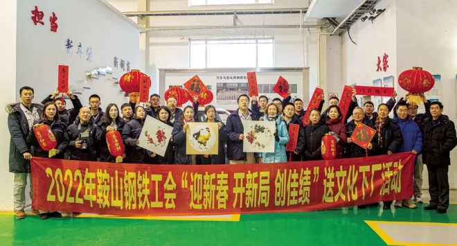 1月18日~19日,鞍鋼集團鞍山鋼鐵工會舉辦了“迎新春 開新局 創佳績”送文化下廠活動(如圖)。活(huo)動(dong)中(zhong),鞍(an)鋼(gang)文(wen)聯(lian)書(shu)畫(hua)家(jia)們(men)把(ba)一(yi)副(fu)副(fu)飽(bao)含(han)美(mei)好(hao)祝(zhu)福(fu)的(de)春(chun)聯(lian)和(he)一(yi)幅(fu)幅(fu)滿(man)是(shi)喜(xi)慶(qing)吉(ji)祥(xiang)的(de)書(shu)畫(hua)作(zuo)品(pin),送(song)給(gei)一(yi)線(xian)職(zhi)工(gong),營(ying)造(zao)了(le)濃(nong)厚(hou)的(de)節(jie)日(ri)氛(fen)圍(wei)。(通訊員 邱梅 /文 特約通訊員 黃獻東/ 攝)