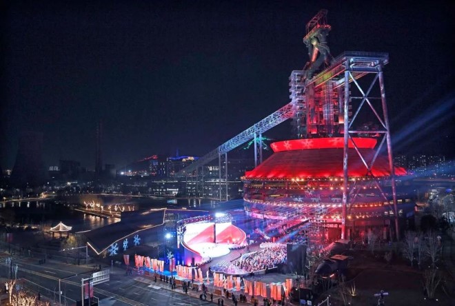 2月2日17時57分,首鋼園廠東門廣場開始北京冬奧會火炬傳遞。