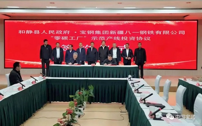 2月15日,八鋼與新疆巴音郭楞蒙古自治州和靜縣人民政府簽署世界首條鋼鐵短流程“零碳工廠”示範產線——巴州鋼鐵綠色短流程項目的建設投資協議。