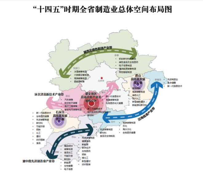 按照京津冀協同發展總體部署和主體功能區規劃總體要求,“十四五”期間,河北省將明確區域產業定位,優化產業空間布局,構建“一核、兩極、四帶、多集群”的空間發展格局。