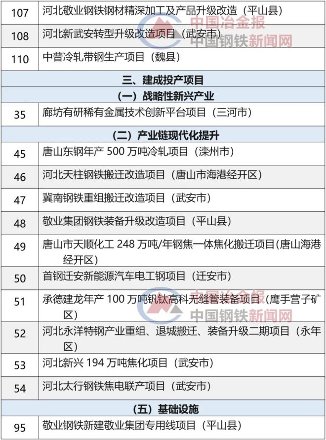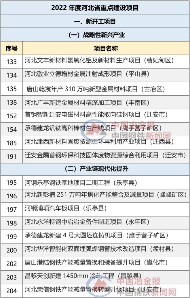 隨著複工複產的不斷推進,近期河北、福建、山東、廣西等地陸續發布2022年重點建設項目名單,其中涵蓋眾多鋼鐵項目,具體詳情整理如下——