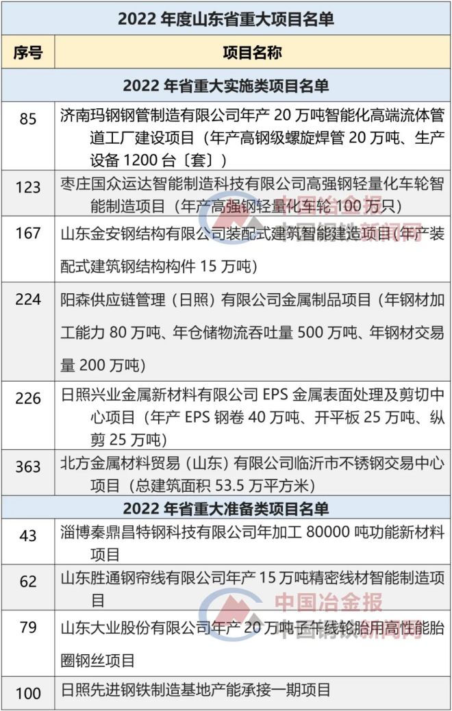 2022年河北、福建、山東、廣西重點鋼鐵項目清單出爐