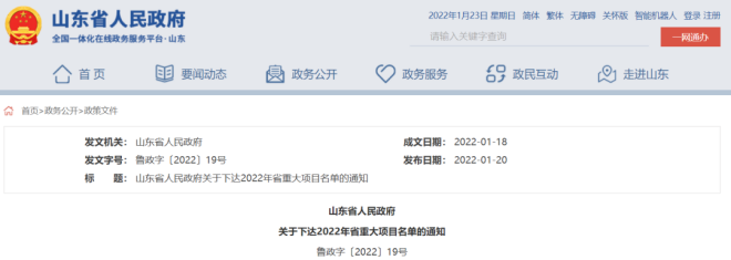 近日,山東省人民政府網站發布了《關於下達2022年省重大項目名單的通知》。據統計,共600個項目上榜,涉及重大實施類項目449項,重大準備類項目151項。