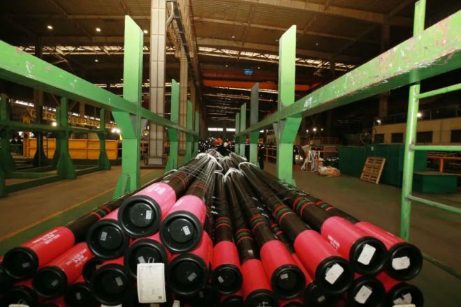 3月11日,《中國冶金報》記者來到天管管加工廠4號套管線,隻見一支支經過“雕琢”的鋼管整齊地排列在料架上,管端的螺紋在燈光的映射下熠熠生輝。這裏正在生產供中石化某頁岩氣項目使用的TP125SG TP-G2 HC氣密封特殊扣套管。