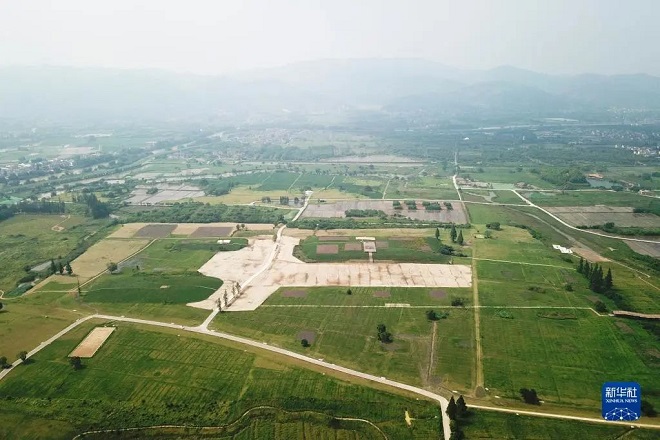 這是位於浙江省杭州市的良渚國家考古遺址公園(2019年6月23日攝,無人機照片)。新華社記者 黃宗治 攝