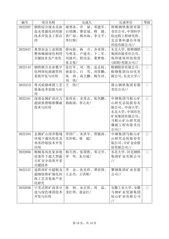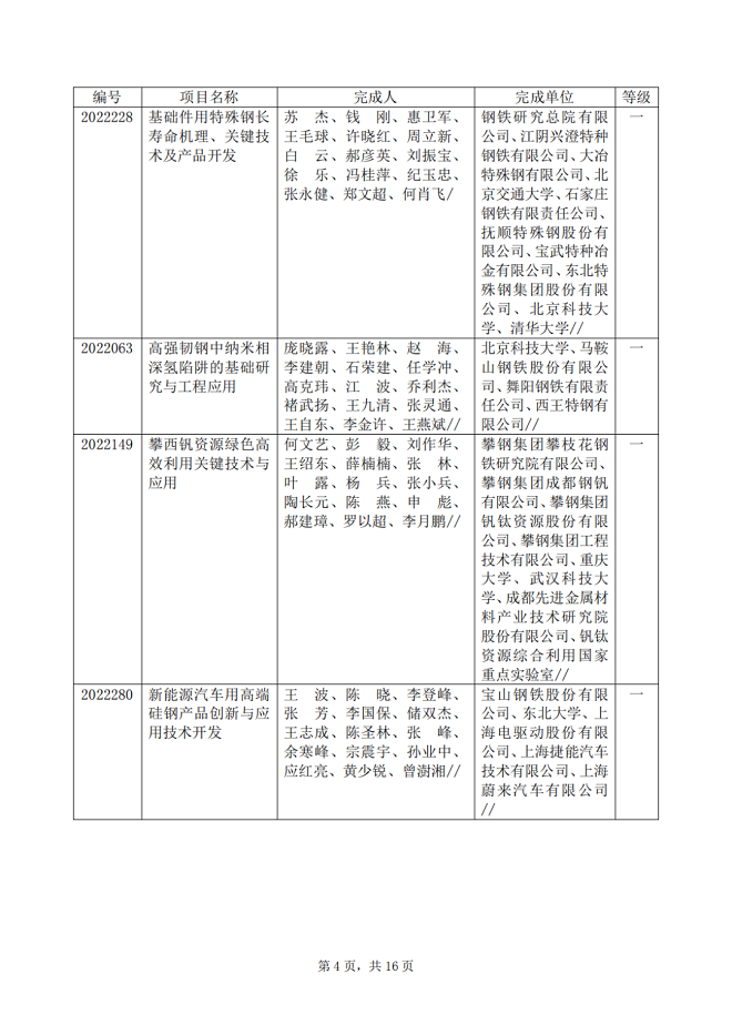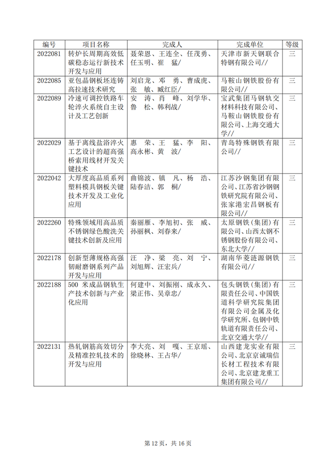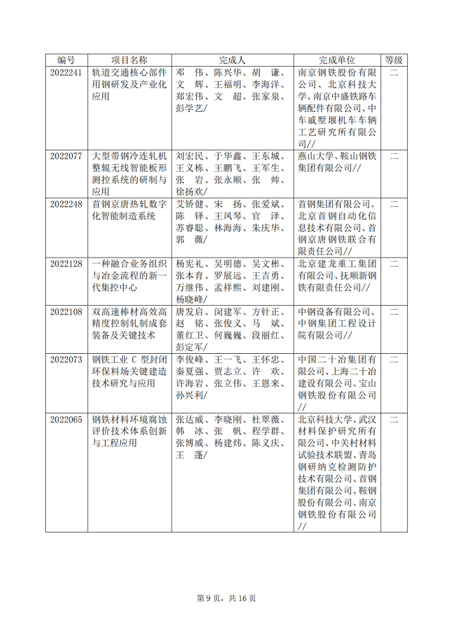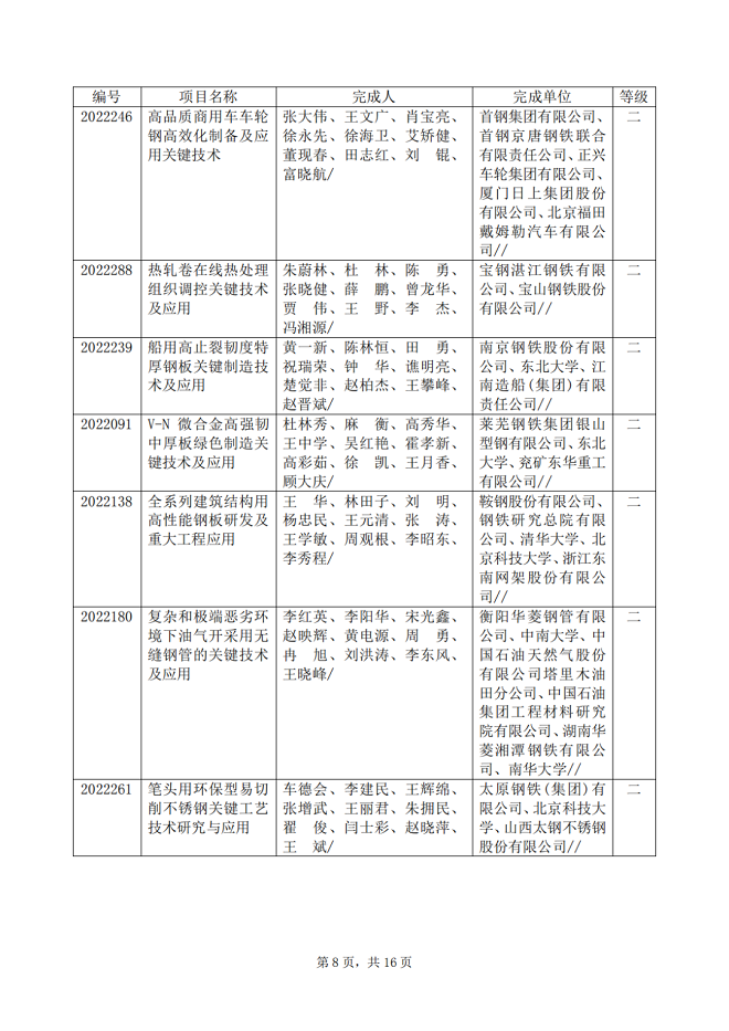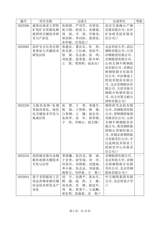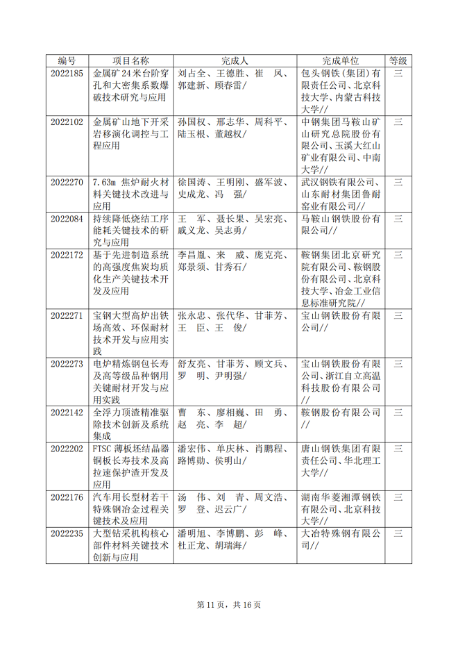 2022年中國鋼鐵工業協會、中國金屬學會冶金科學技術獎專業評審推薦獲獎項目公告