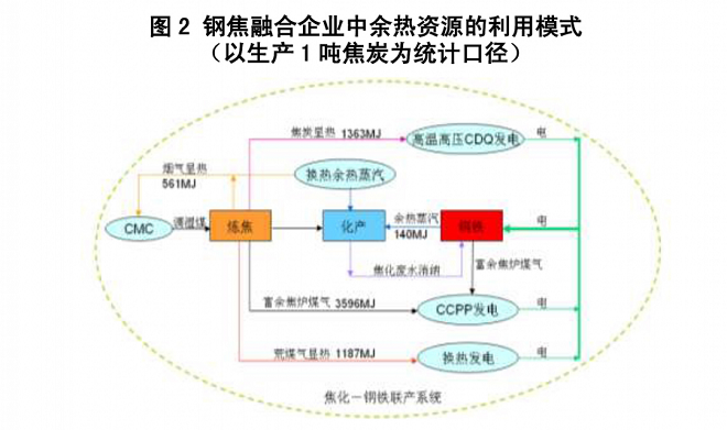 鋼焦融合可實現餘熱餘能資源的高效利用——餘熱餘能發電。鋼焦融合企業與獨立的焦化企業相比,增加了更多的優化用能和高效用能條件,提高了餘熱餘能自發電率。