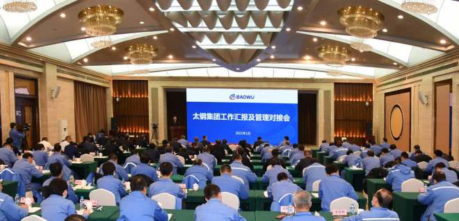 2021年1月5日,元旦剛過沒幾天,在太鋼正式加入中國寶武後的第8個工作日,中國寶武黨委書記、董事長陳德榮,總經理、黨委副書記胡望明帶領相關部門人員奔赴太鋼,組織召開了太鋼幹部大會和管理對接會。