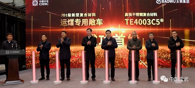 12月16日,全球首批70噸級新型複合材料運煤專用敞車在太原下線,這標誌著由太鋼集團、中車太原公司和寧東公司合作研發的高強耐蝕不鏽鋼複合材料TE4003C5®,以及使用該材料製造的運煤專用敞車成功實現首發。