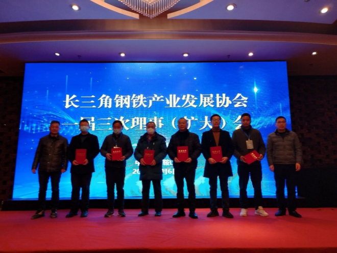 會議同期舉行了長三角鋼鐵產業發展協會一屆三次理事(擴大)會,調整一屆三次理事會理事成員名單,選舉產生了一屆三次輪值會長,並向副會長、標準副編委代表、科普教育中心特聘專家代表頒發副會長、專家證書,對先進會員代表進行了表彰。